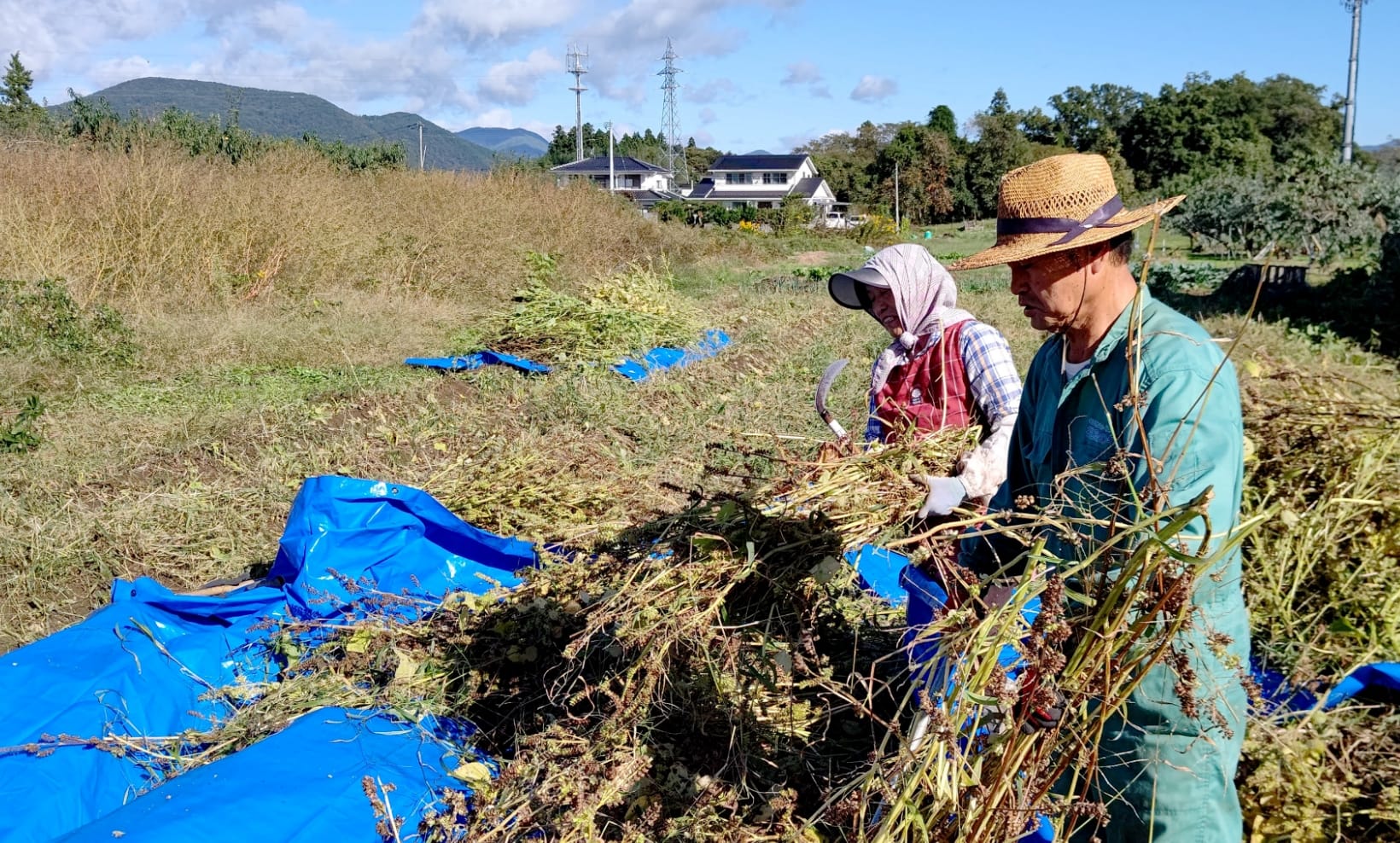 昔ながらの手刈り収穫のため大変手間がかかりますが、畑ではえごまに優しく声をかけ、丁寧に収穫し心を込めて商品を作っております。